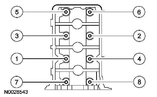 ^ Stage 1: Tighten fasteners 1 through 8 to 25 Nm (18 lb-ft).