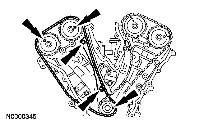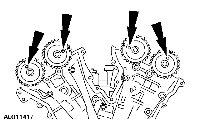 42. If timing marks in the timing chains are not evident, use a permanent-type marker to mark the crankshaft and camshaft timing marks on the LH and RH timing chains.