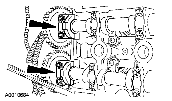 CAUTION: Do not install the camshaft journal thrust caps until all of the camshaft bearing caps have been installed, or damage to the thrust caps can occur.