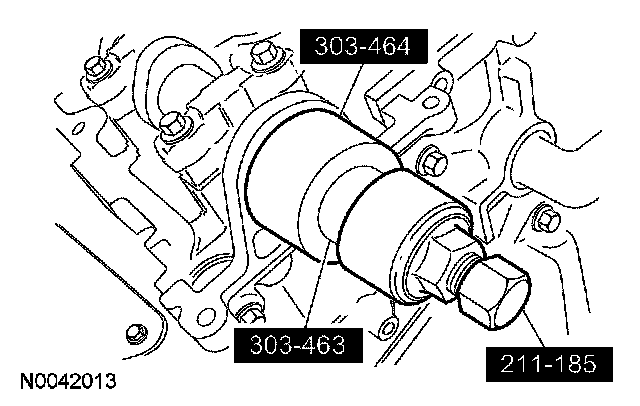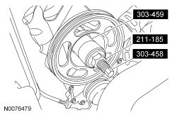 NOTE: Only the roller collared nut from the Power Steering Pump Pulley Installer (211-185) is used on Camshaft Pulley Installer (303-458).