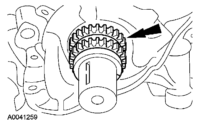 ^ Move the crankshaft to the front of the cylinder block. Note and record the crankshaft end play.