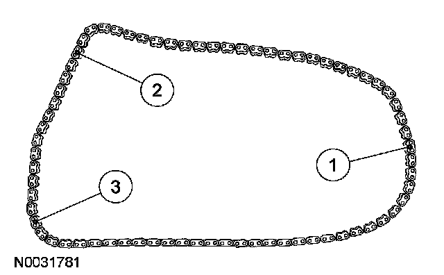 2 Starting with the crankshaft timing mark, count 29 links and mark the link.
