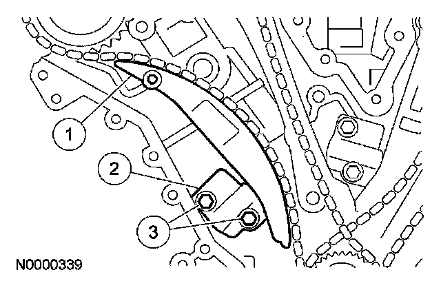44. Install the LH timing chain tensioner arm and the LH timing chain tensioner.