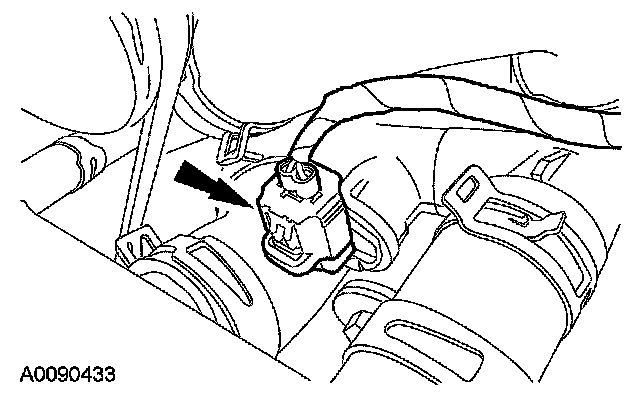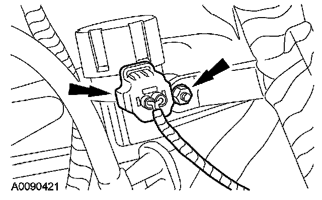 5. Detach the wiring retainer, remove the nut and the heated oxygen sensor (HO2S) electrical connector bracket.