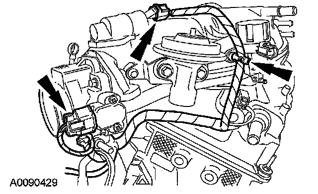 4. Detach the engine control sensor wiring connectors from the upper intake manifold.