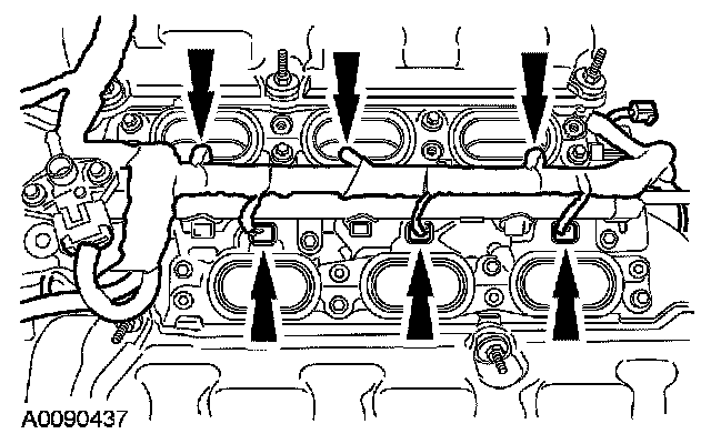 Remove the bolts and the 6 coil-on-plugs.