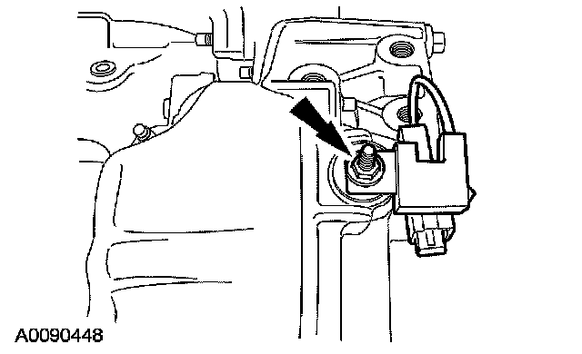 6. Disconnect the exhaust gas recirculation (EGR) vacuum regulator electrical connector and remove the nut. Detach the wiring harness retainer.