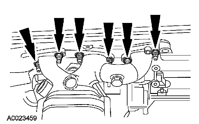 29. Remove and discard the 6 RH exhaust manifold studs.