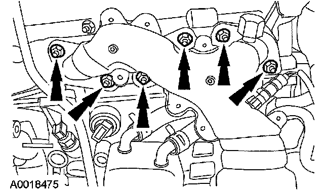 31. Remove the nuts, the LH exhaust manifold and the gasket.