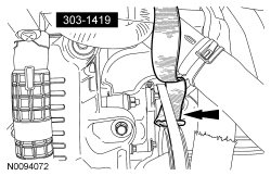 34. Position the Stretchy Belt Remover under the coolant pump belt as shown.