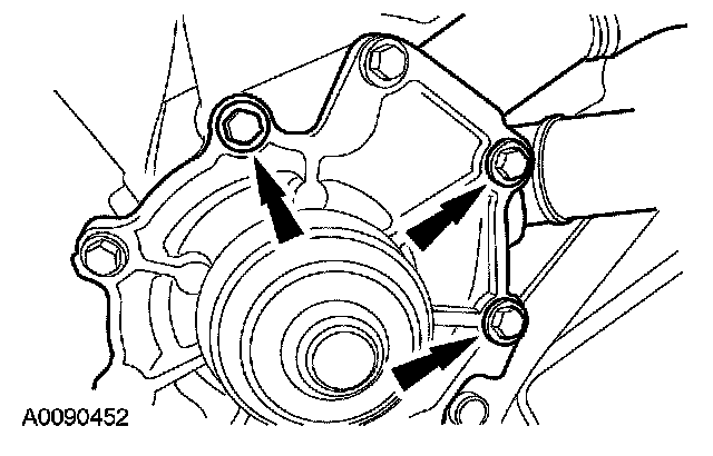 38. Remove the 3 bolts and the coolant pump.