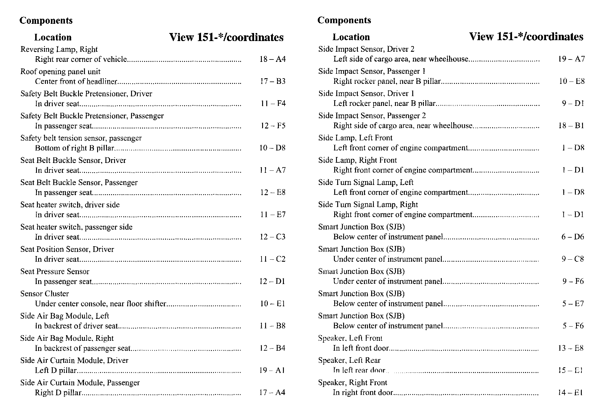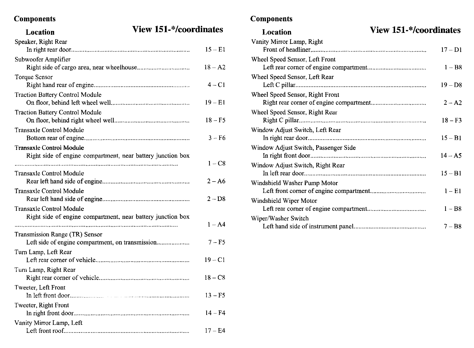 If a link on the Component Location Index to a View is not provided, that means that the Component and/or View in question does NOT apply to the vehicle model selected.