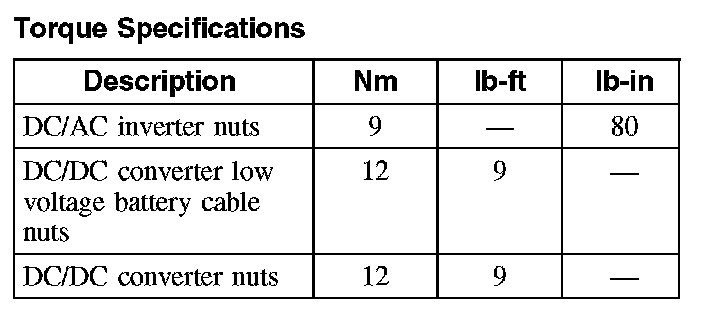 Torque Specifications: