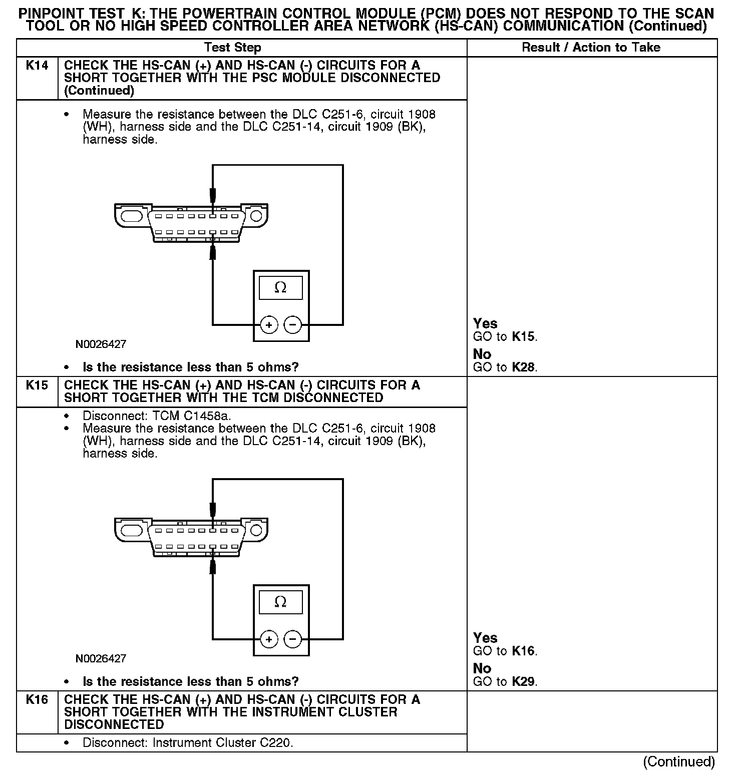 Test K: The Powertrain Control Module (PCM) Does Not Respond To The Scan Tool Or No High Speed Controller Area Network (HS-CAN)