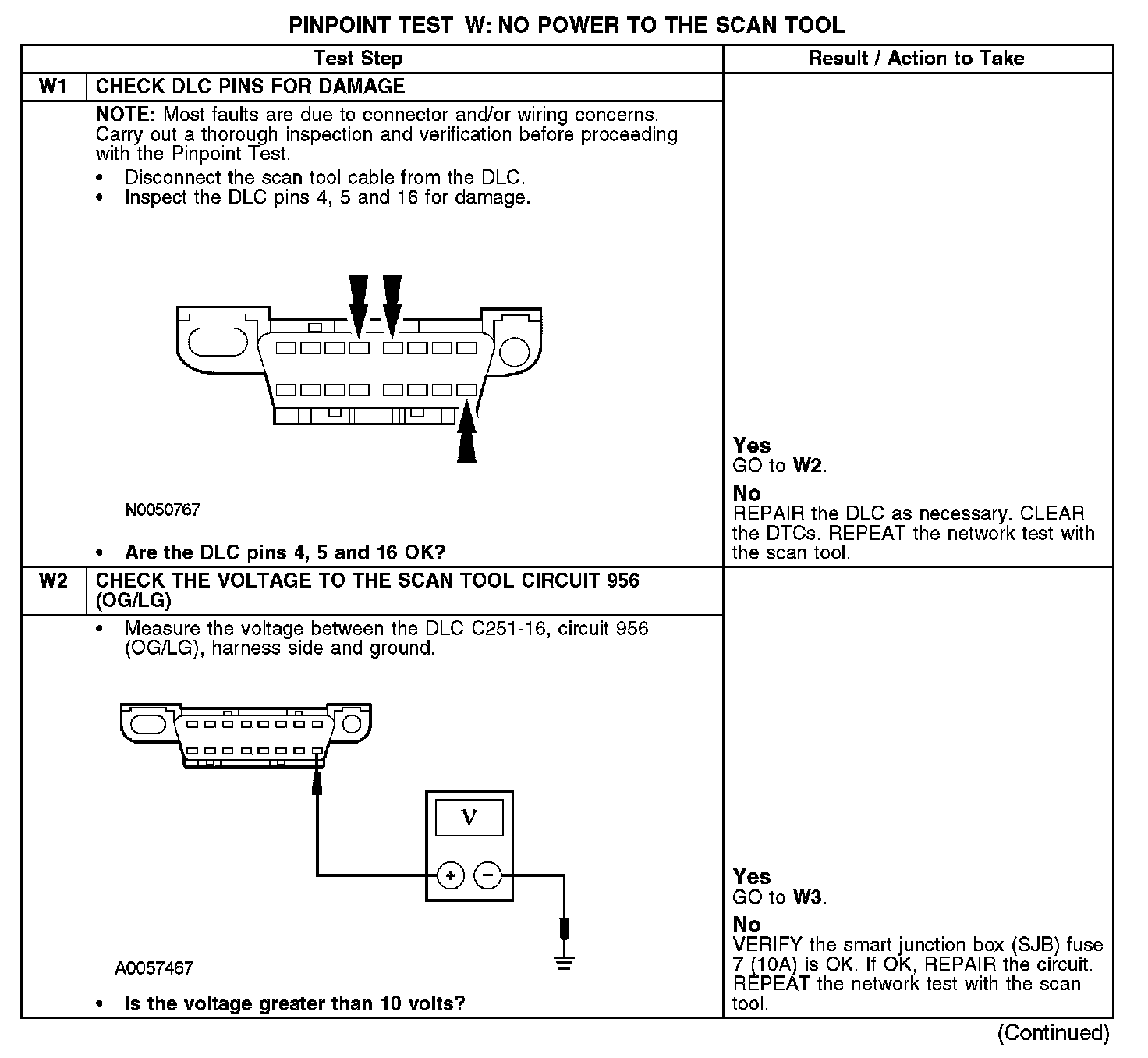 PINPOINT TEST W: NO POWER TO THE SCAN TOOLW1-W2: