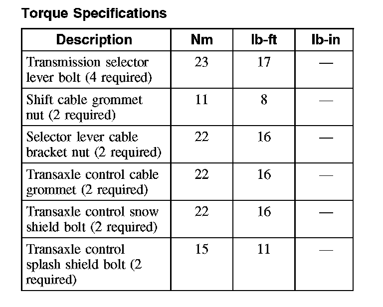 Torque Specifications: