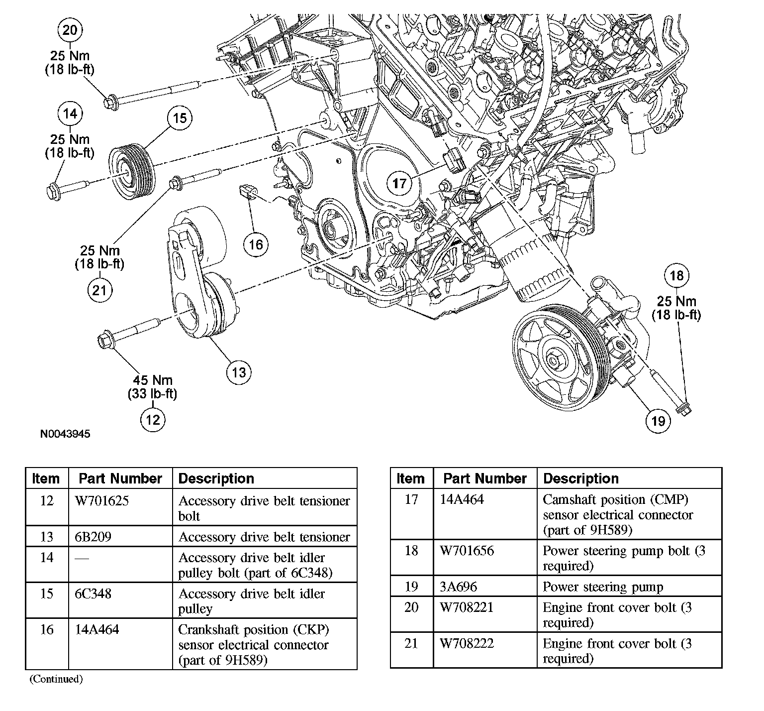 17. NOTE: The bolt positioned behind the power steering pressure tube will remain in the pump housing.