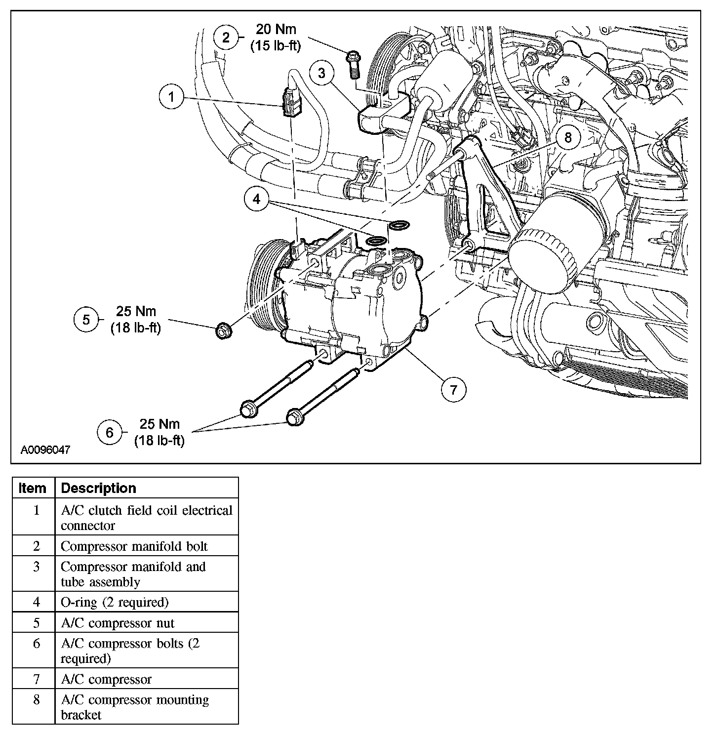 - If installing a new A/C compressor, the A/C clutch disc and hub, A/C compressor pulley and A/C clutch field coil must be inspected and transferred from the old unit to the new unit if suitable for reuse.