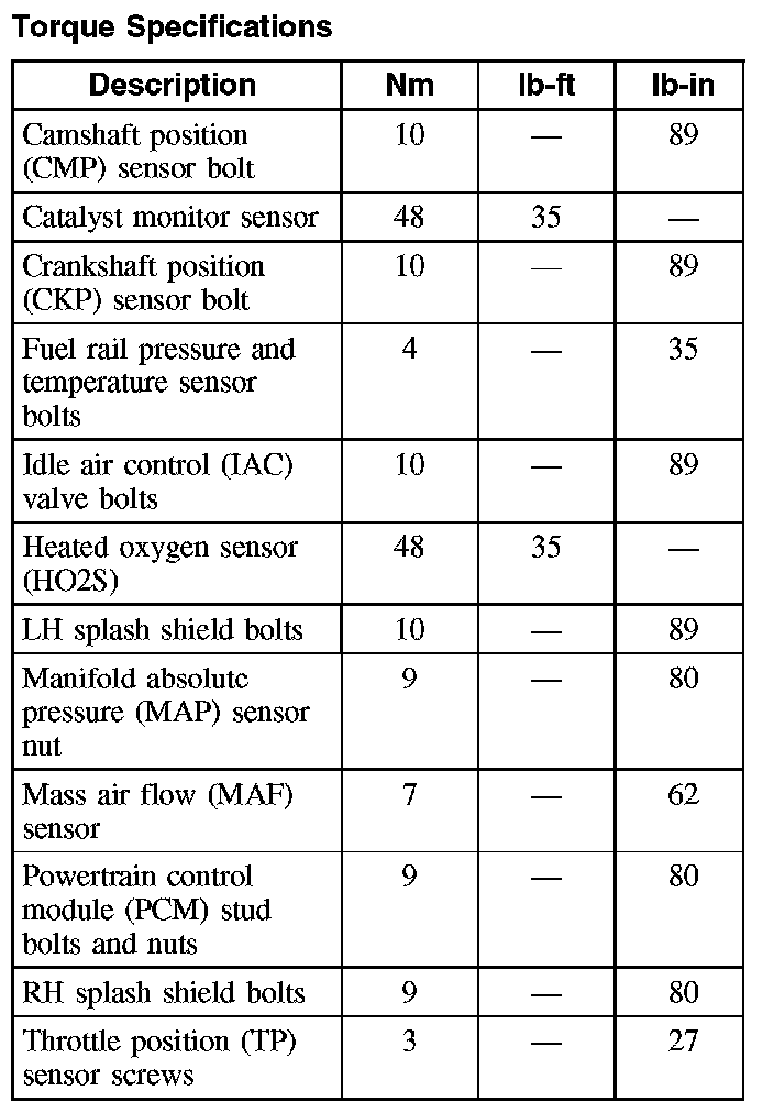 Torque Specifications: