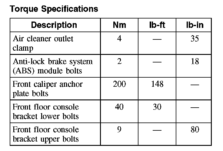 Torque Specifications (Part 1):