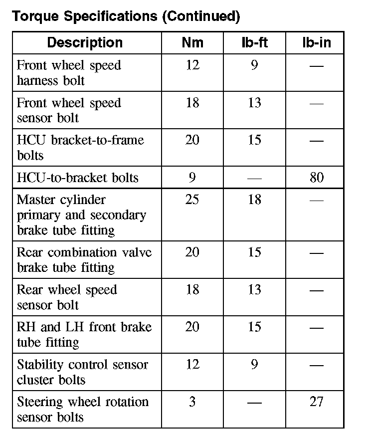 Torque Specifications (Part 2):