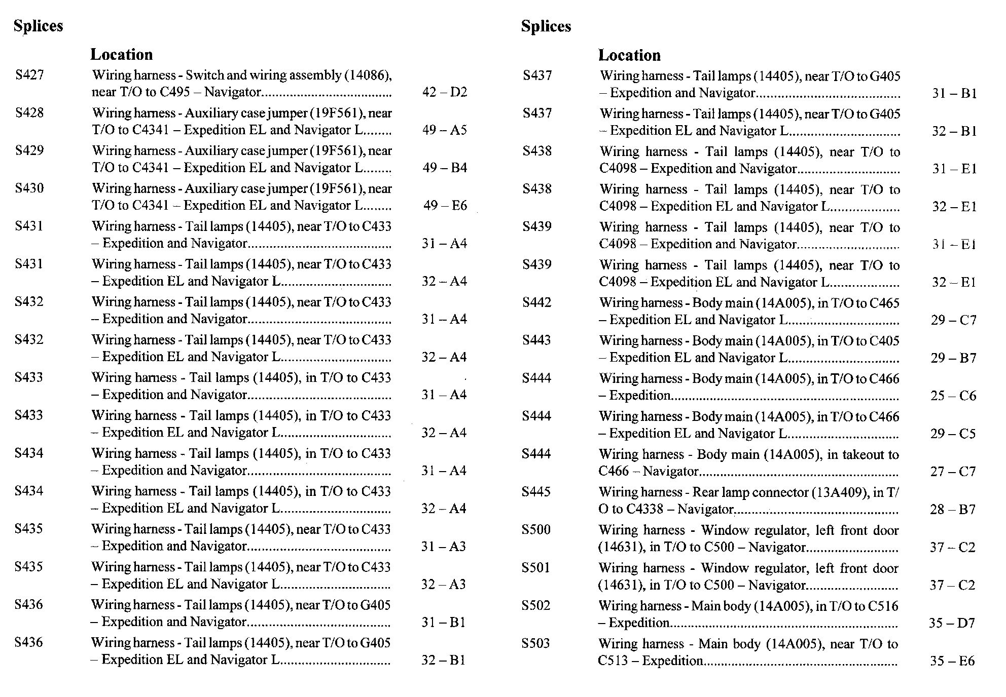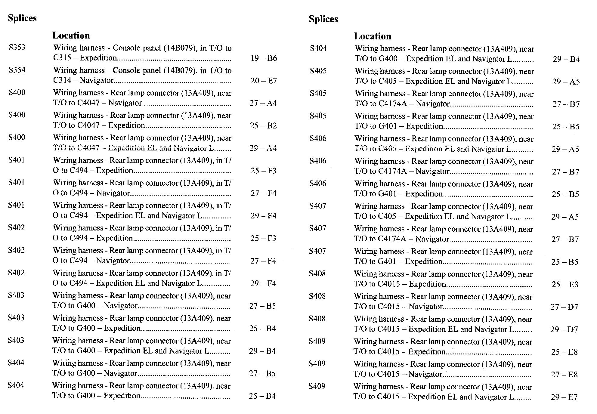 PLEASE NOTE: If a link on the Splices Location Index to a View is not provided, that means that the Splices and/or View in question does NOT apply to the vehicle model selected.
