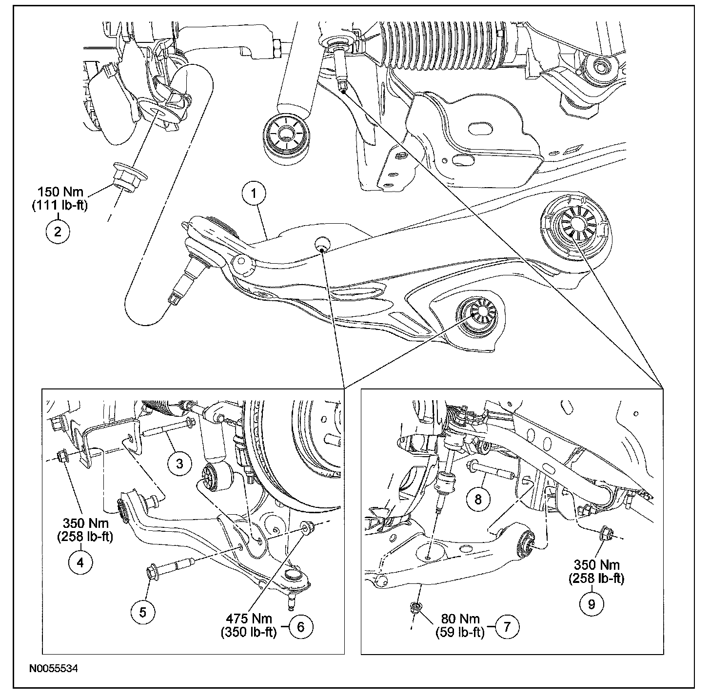 CAUTION: Suspension fasteners are critical parts because they affect performance of vital parts and systems and their failure can result in major service expense. A new part with the same part number must be installed if installation becomes necessary. Do not use a replacement part of lesser quality or substitute design. Torque values must be used as specified during reassembly to make sure of correct retention of these parts.