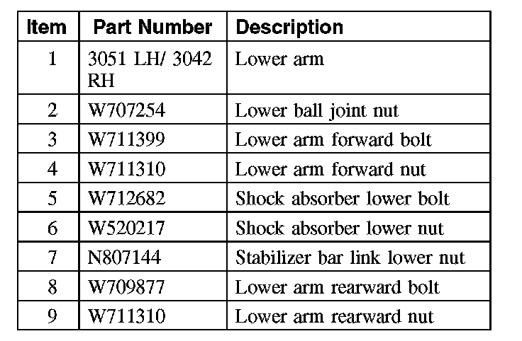 9. CAUTION: Do not tighten the lower shock nut, lower arm forward nut or lower arm rearward nut until the installation procedure is complete and the weight of the vehicle is resting on the wheel and tire assemblies.