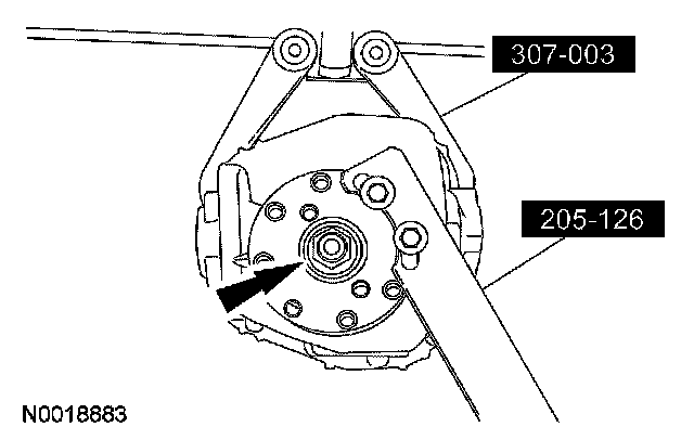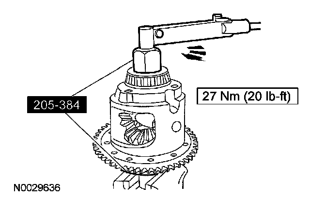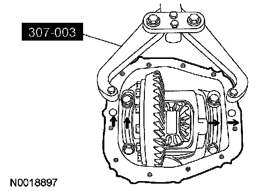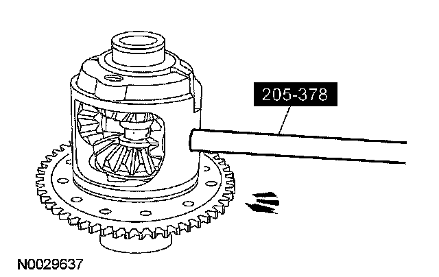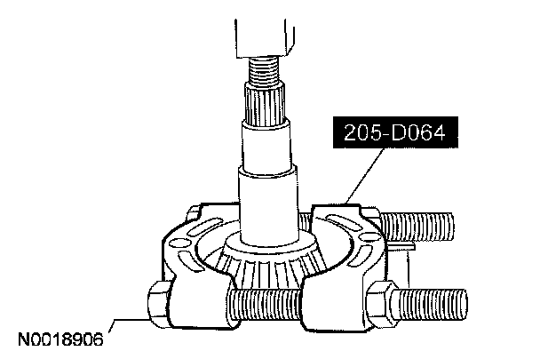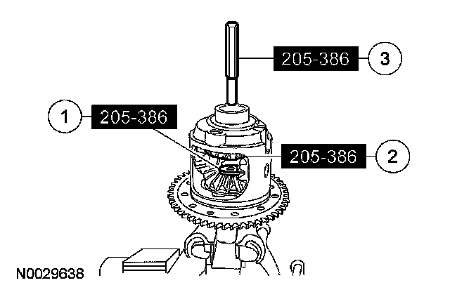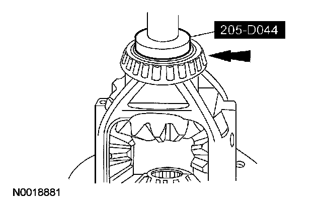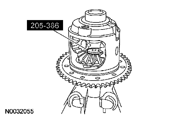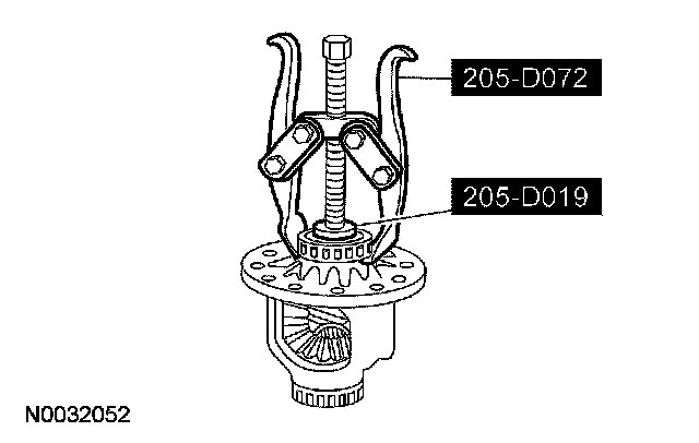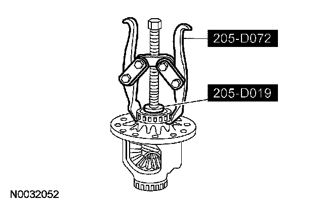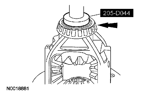 17. NOTE: The differential bearings do not need to be removed to overhaul the Traction-Lok differential. If bearing removal is required, use special tool 205-D072 and special tool 205-D019 for the differential case bearings.