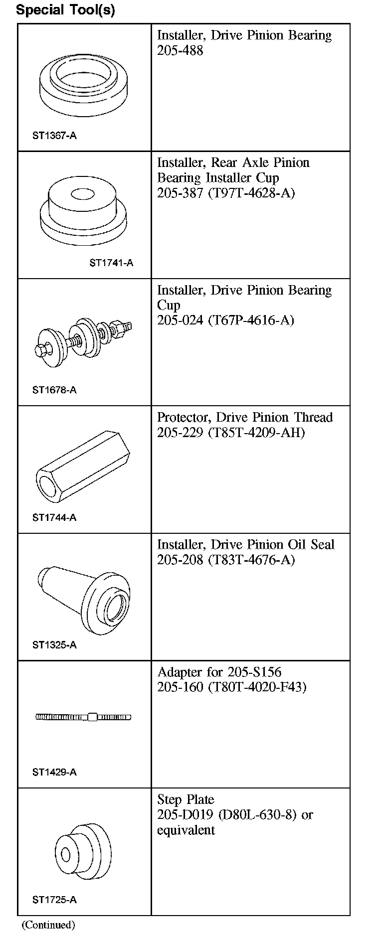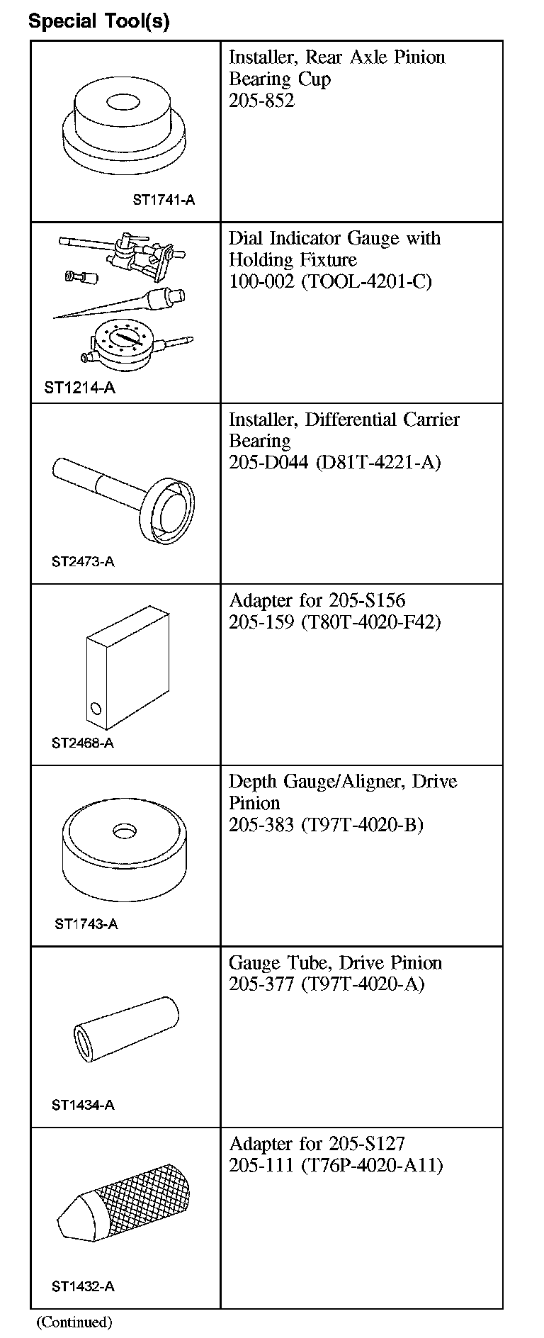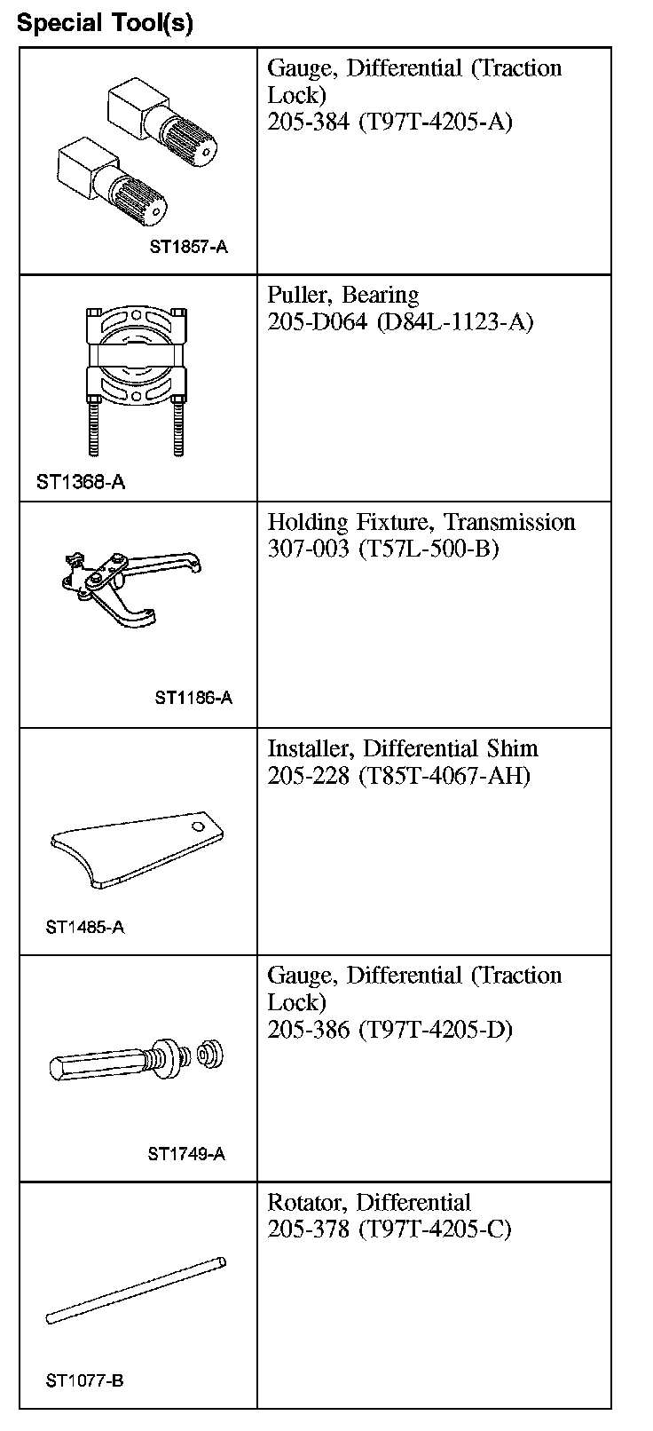 17. NOTE: The differential bearings do not need to be removed to overhaul the Traction-Lok differential. If bearing removal is required, use special tool 205-D072 and special tool 205-D019 for the differential case bearings.