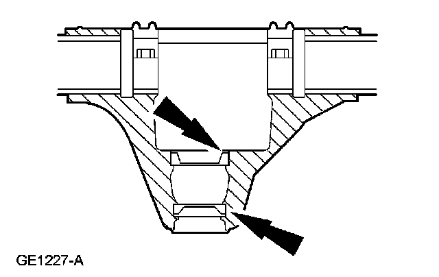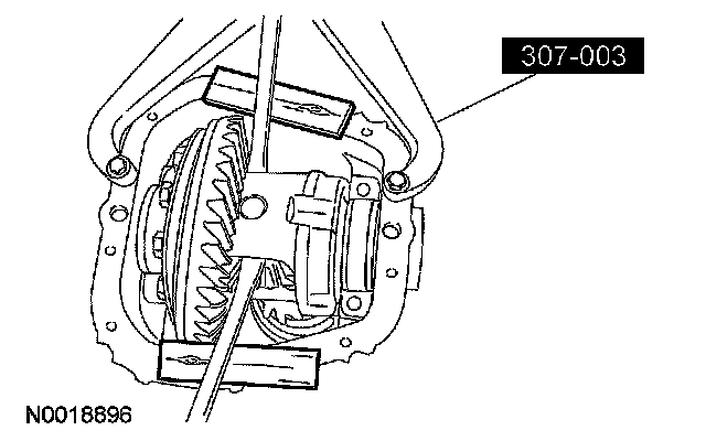 10. NOTE: Visually inspect the differential carrier bearings and cups for discoloration or other signs of bearing failure.