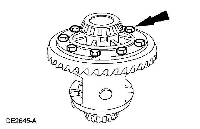 16. CAUTION: Do not damage the ring gear bolt hole threads.