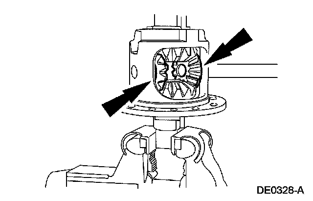 1 Rotate the differential case to make sure the differential bearings are seated.