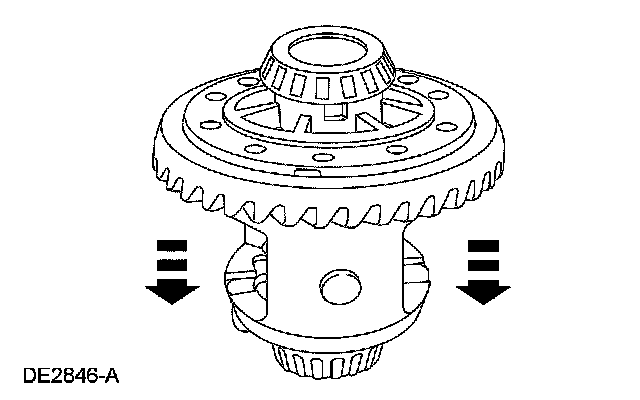 ^ If the runout does not exceed the specification, the cause of the original excessive runout is the differential ring gear. Remove the differential case. Discard the differential ring gear and the drive pinion gear. Proceed to Final disassembly in this procedure.