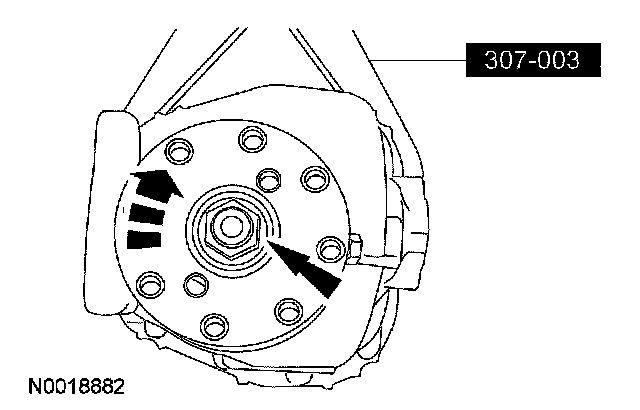 6. CAUTION: Mark the position and location of the differential bearing caps as the arrows may not be visible. Always install the differential bearing caps in their identical location and position.