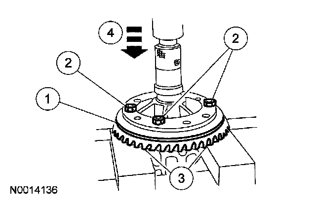 11. Install the ring gear bolts and tighten.