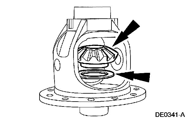 12. NOTE: Coat the differential side gears and differential side gear thrust washers with rear axle lubricant.