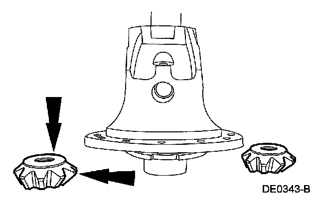 14. NOTE: Coat the differential pinion thrust washers and differential pinion gears with rear axle lubricant.