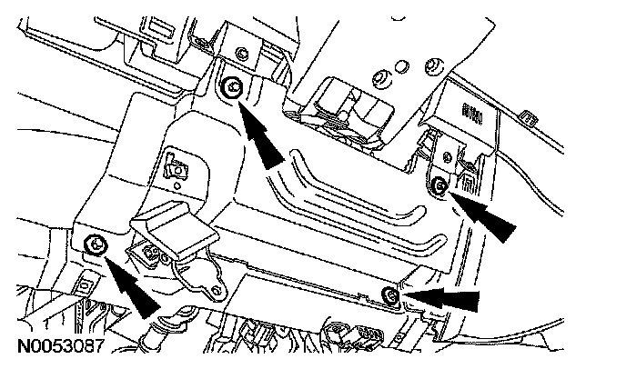 6. NOTE: To prevent cable damage, do not apply force to the selector lever cable assembly between the steering column selector lever arm and the steering column bracket.