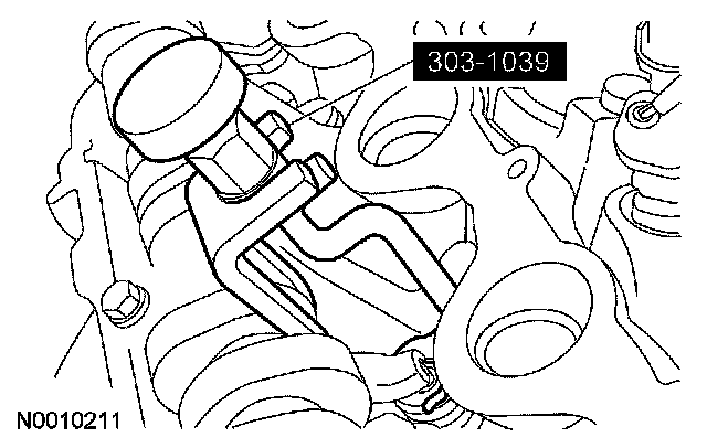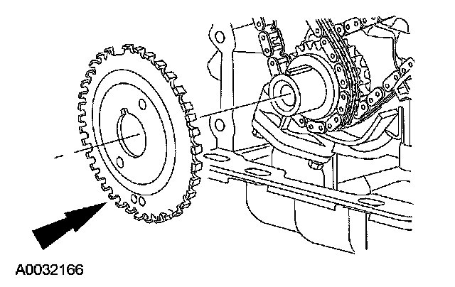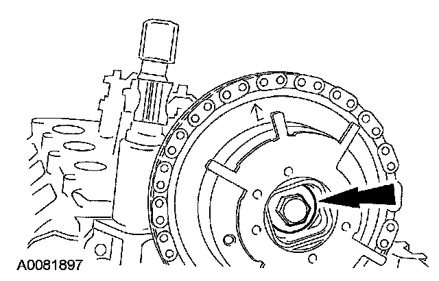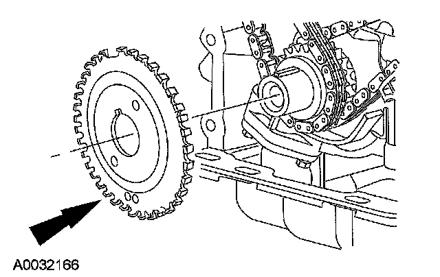 15. CAUTION: Damage to the camshaft phaser sprocket assembly will occur if mishandled or used as a lifting or leveraging device.