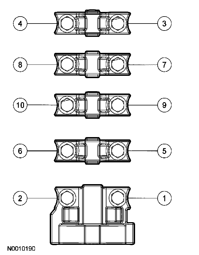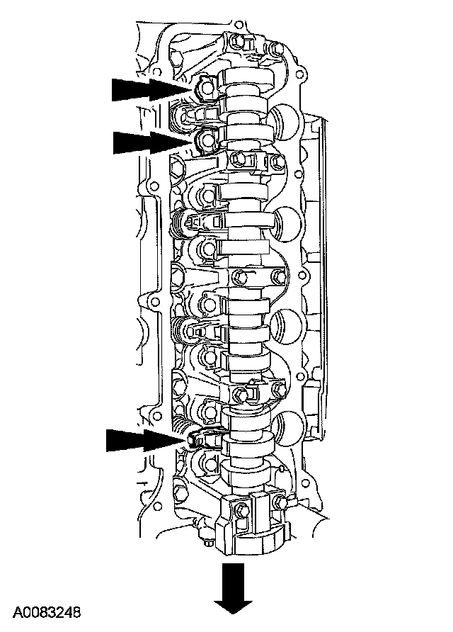 NOTE: The camshaft bearing caps must be installed in their original locations. Record camshaft bearing cap locations.