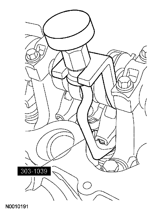 19. CAUTION: Remove the front thrust camshaft bearing cap straight upward from the bearing towers, or the bearing cap may be damaged from sideloading.