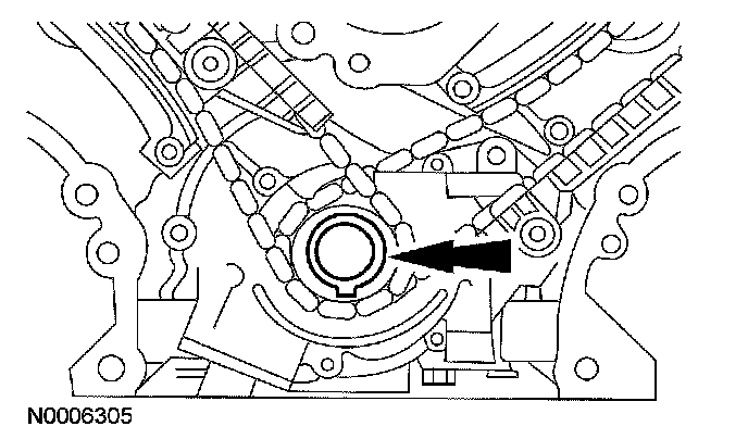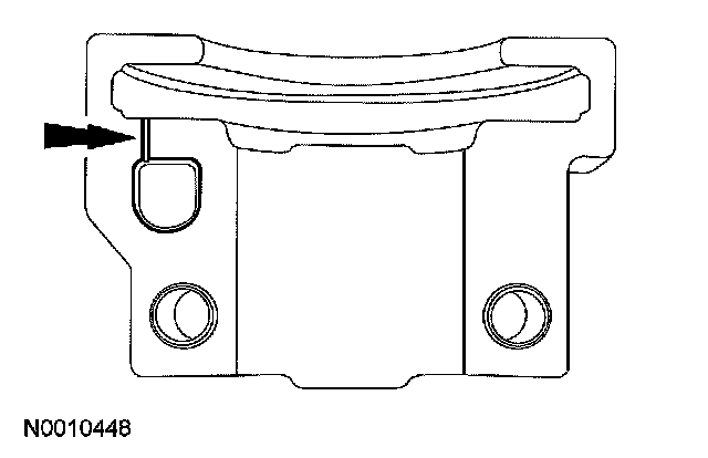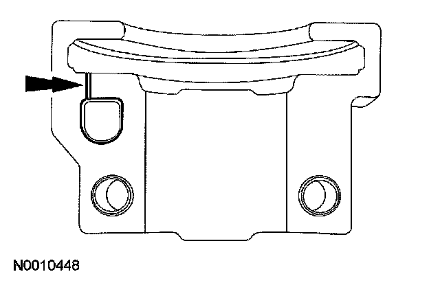 ^ The camshaft front thrust bearing cap contains an oil metering groove. Make sure the groove is free of foreign material.