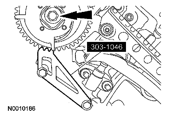 14. CAUTION: Damage to the camshaft phaser sprocket assembly will occur if mishandled or used as a lifting or leveraging device.