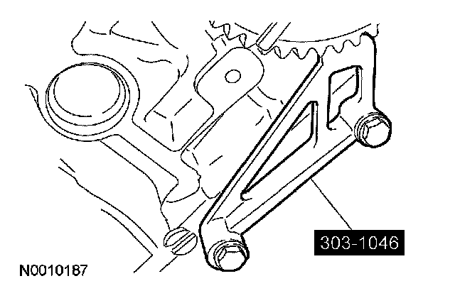 NOTE: The lower half of the timing chain must be positioned above the tensioner arm dowel.