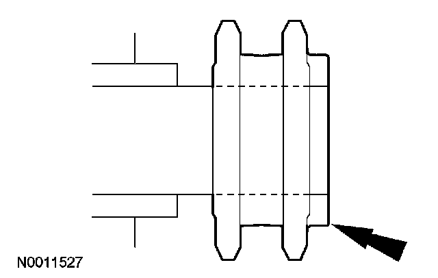 7. CAUTION: If one or both tensioner mounting bolts are loosened or removed, the tensioner-sealing bead must be inspected for seal integrity. Any cracks, tears, cuts or separation from the tensioner body, or permanent compression of the seal bead, will require replacement of the tensioner.