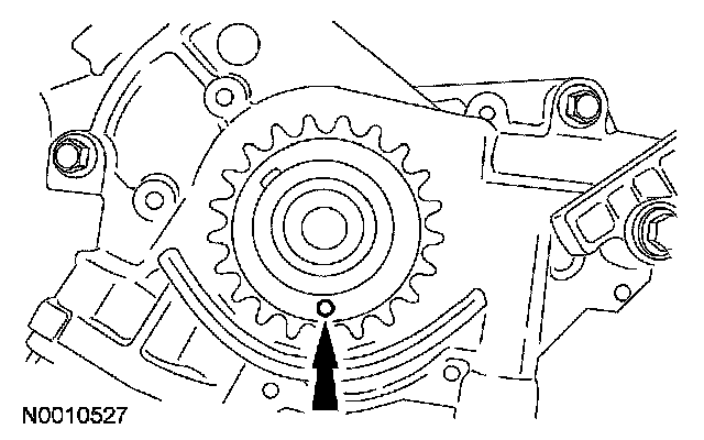 21. NOTE: The RH and LH camshaft phaser sprockets are similar. Refer to the single timing mark to identify the RH camshaft phaser sprocket and the L timing mark to identify the LH camshaft phaser sprocket.