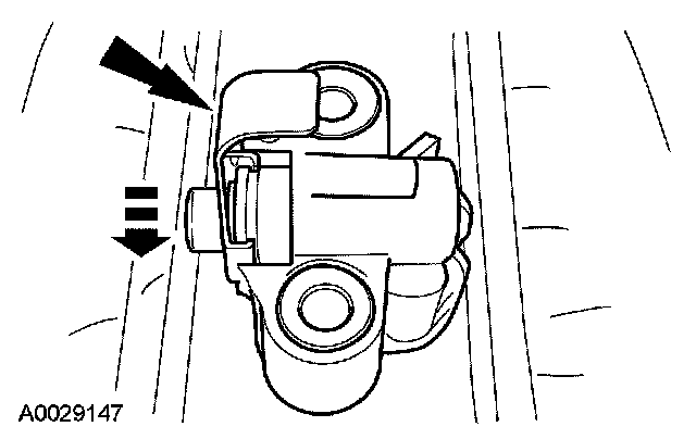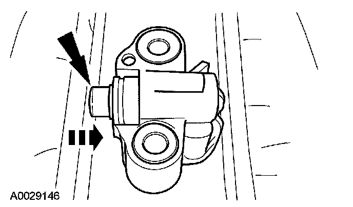 9. Install a retaining clip on the tensioner to hold the plunger in during installation.