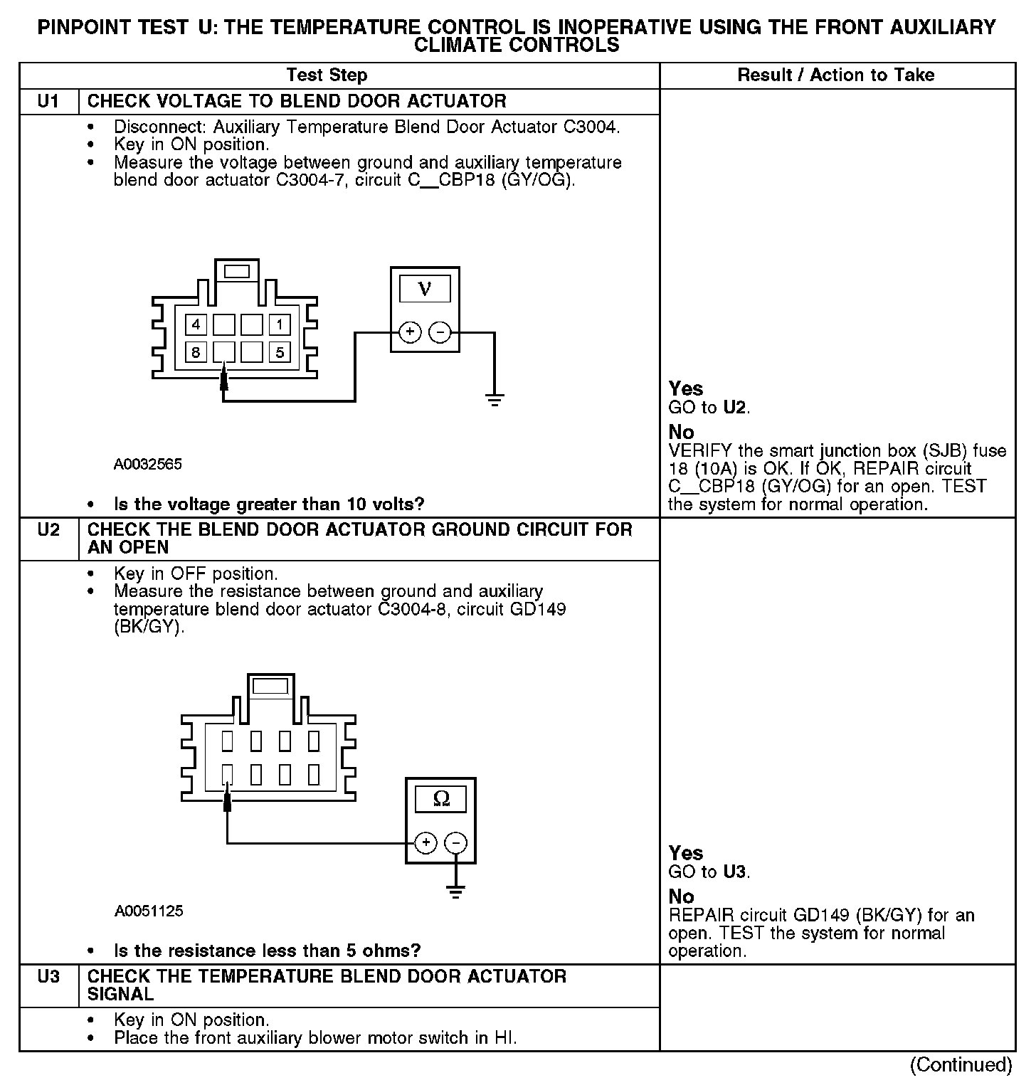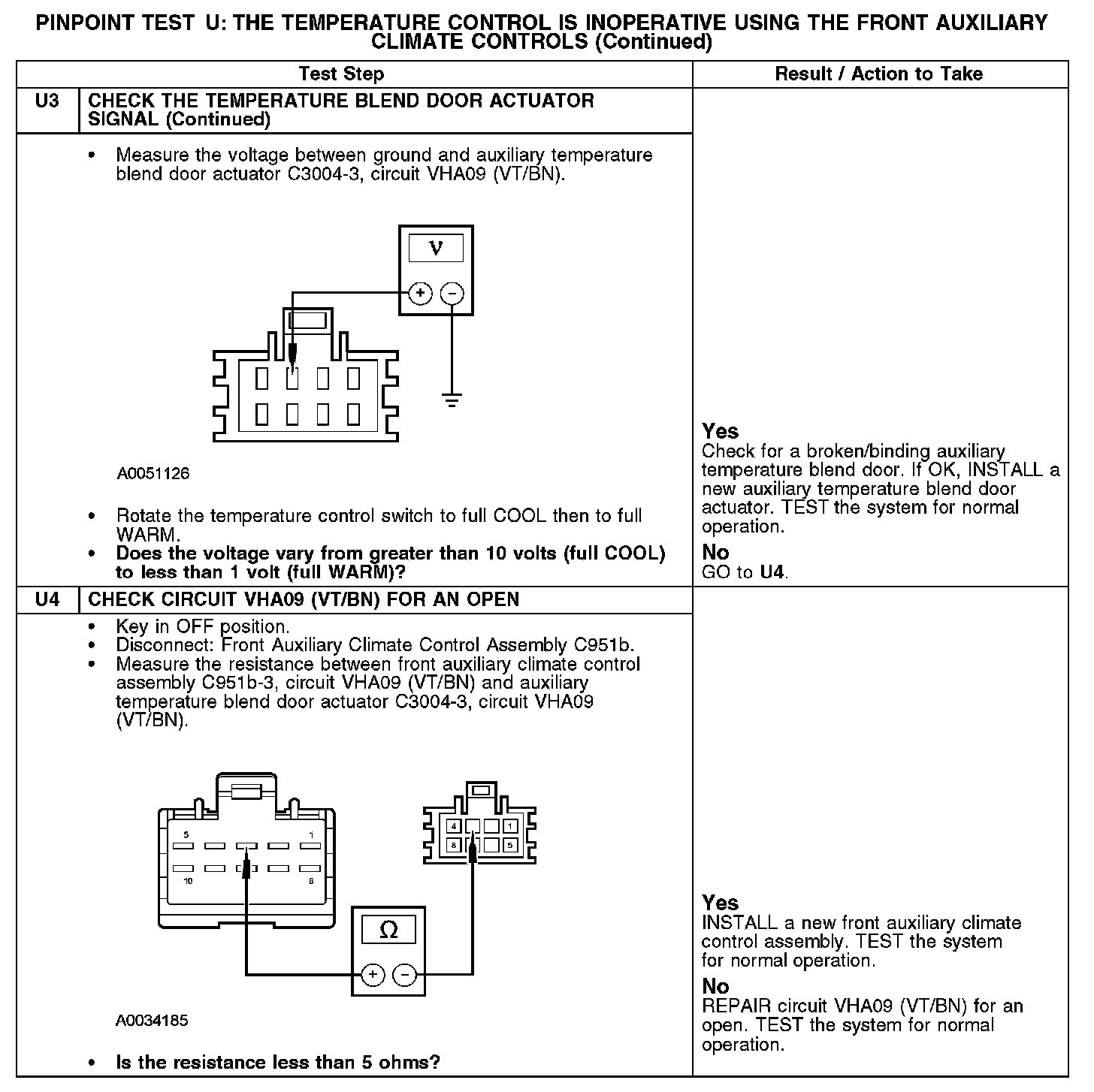PINPOINT TEST U: THE TEMPERATURE CONTROL IS INOPERATIVE USING THE FRONT AUXILIARY CLIMATE CONTROLS
