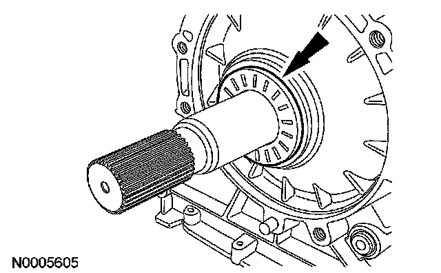 10. Install the silver shim (caged bearing) on the planet carrier hub and output shaft assembly.